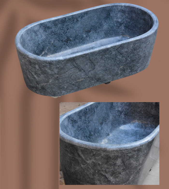The soft lines of this free-standing bathtub, calm the mind and soothe the soul. Carved from monumental blocks of stone.